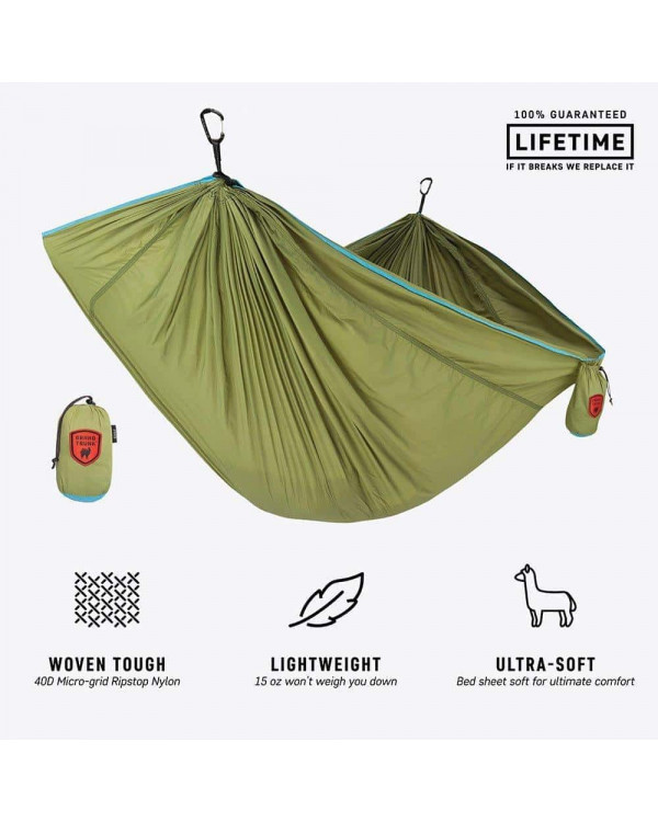 Izredno lahka, le 330g. Izredno majhen volumen zložene viseče mreže. Oblika viseče mreže nam nudi ogromno površino za uživanje. Single viseča mreža nudi super udobje za enega odraslega človeka. Tkanina je vodoodporna in visečo mrežo lahko uporabite tudi za streho, če vas v naravi ujame dež.